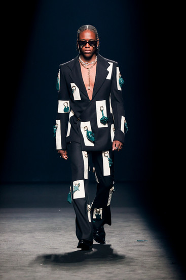La colección va mucho más allá de la estética y cuestiona las narrativas superficiales. Calafat utiliza materiales de alta calidad y con conciencia ambiental, como la seda, el algodón, el cuero y el tencel, pero los combina con una perspectiva surrealista que no teme generar incomodidad. Las características bomber jackets de la firma vuelven una vez más con bordados y algunos detalles que hablan más fuerte que cualquier etiqueta o certificado ambiental cualquiera: esta es la nueva moda española, audaz y sin miedo a provocar alboroto. Además, muchos de los looks son acompañados por la joyería de UNOde50 y lencería de TEZENIS.