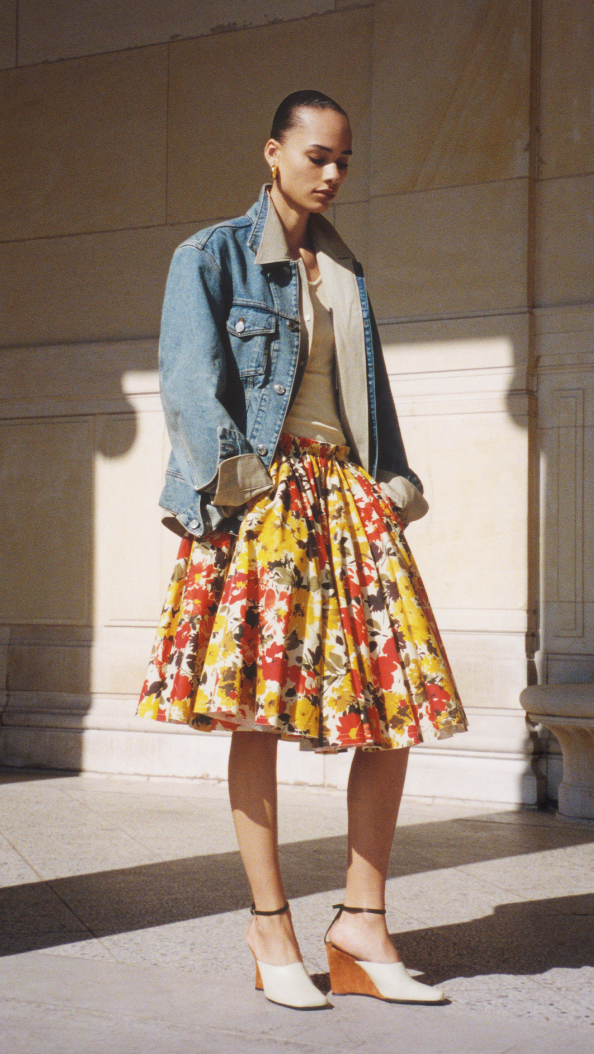 La colección cápsula presenta tanto ropa de mujer como de hombre, con pantalones cortos, faldas, camisas, chaquetas vaqueras e incluso accesorios. Los estampados son la señal inequívoca de que los meses cálidos están a punto de llegar, sobre todo el gingham de Ami, en rojo y blanco y amarillo y blanco, así como un atrevido estampado floral. La guinga permite incluso combinarla con tu pareja para una cena íntima y acogedora. Este detalle transforma la colección en un vehículo de experiencias compartidas y momentos memorables.