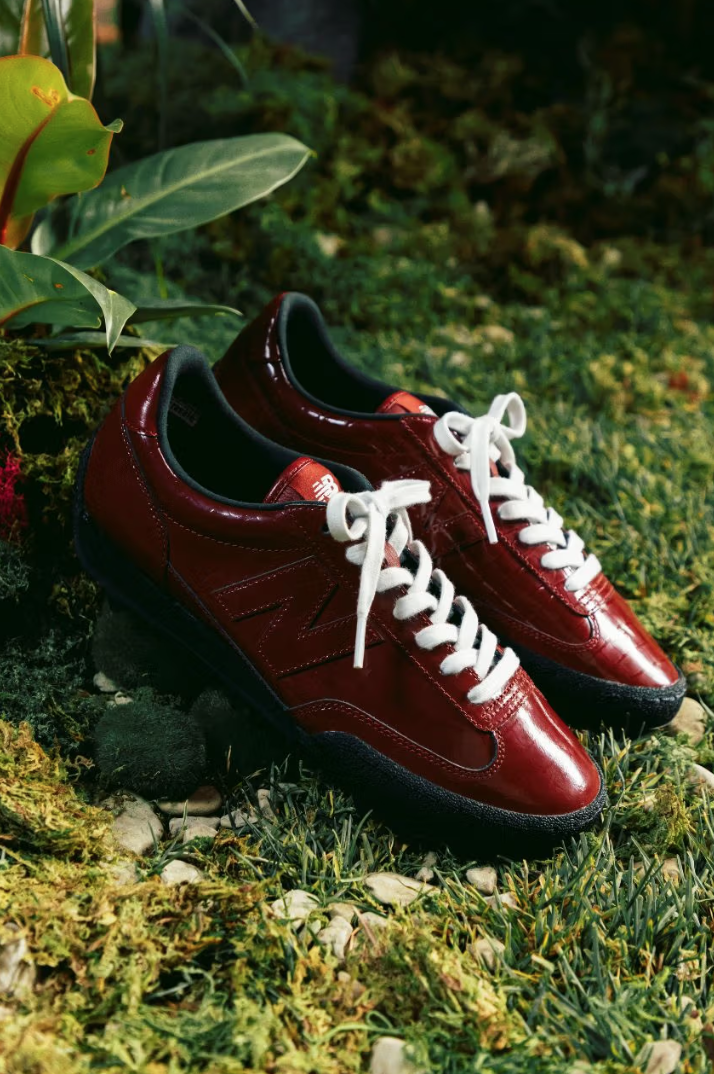 Cada detalle es un golpe visual: cordones blancos que cortan contra el rojo profundo, logo de New Balance que brilla como insignia y suela negra de running que combina vintage y funcionalidad como un guiño descarado a los clásicos del deporte. Todo está pensado para destacar, provocar y generar deseo instantáneo.