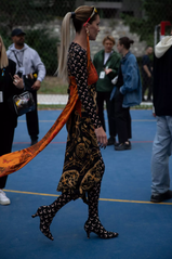 "Nada impide ya a la mujer llevar prendas de hombre, hay todo un universo unisex que se despliega", explicó Serre, que introdujo en esta línea vestidos con cortes asimétricos, ropa vaquera hecha a base de jirones de telas, capas de pañuelos de seda estampados y camisas de algodón con encaje a partir de las fundas de almohada. Pero ahí no acaba la excentricidad de Marine Serre que también se manifiesta en la elección del lugar de la pasarela. Esta vez ha sido en una pista deportiva que hace match con la estética sporty chic de la firma. De ahí que hayamos podido ver como accesorio de la colección algunas raquetas de tenis.
