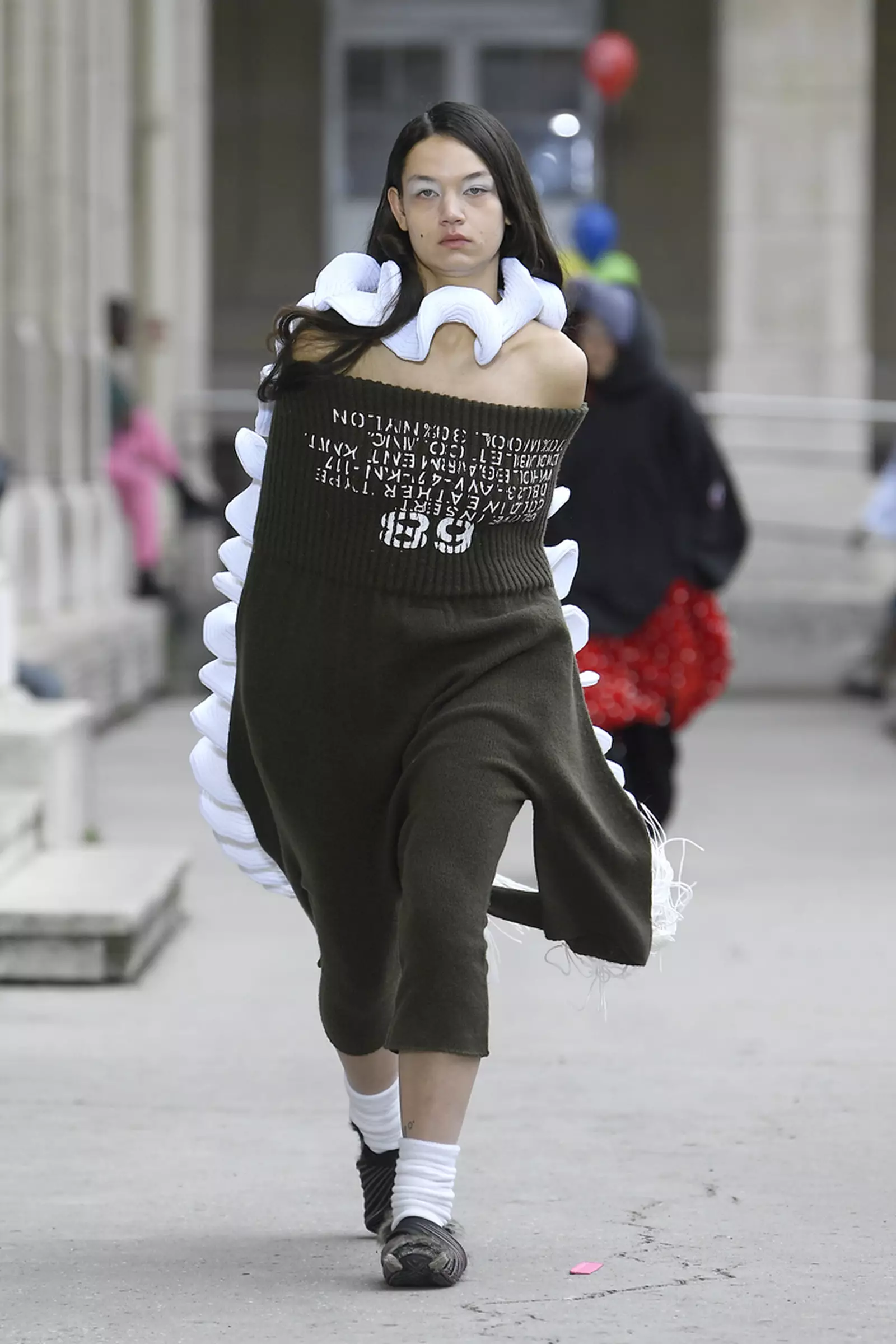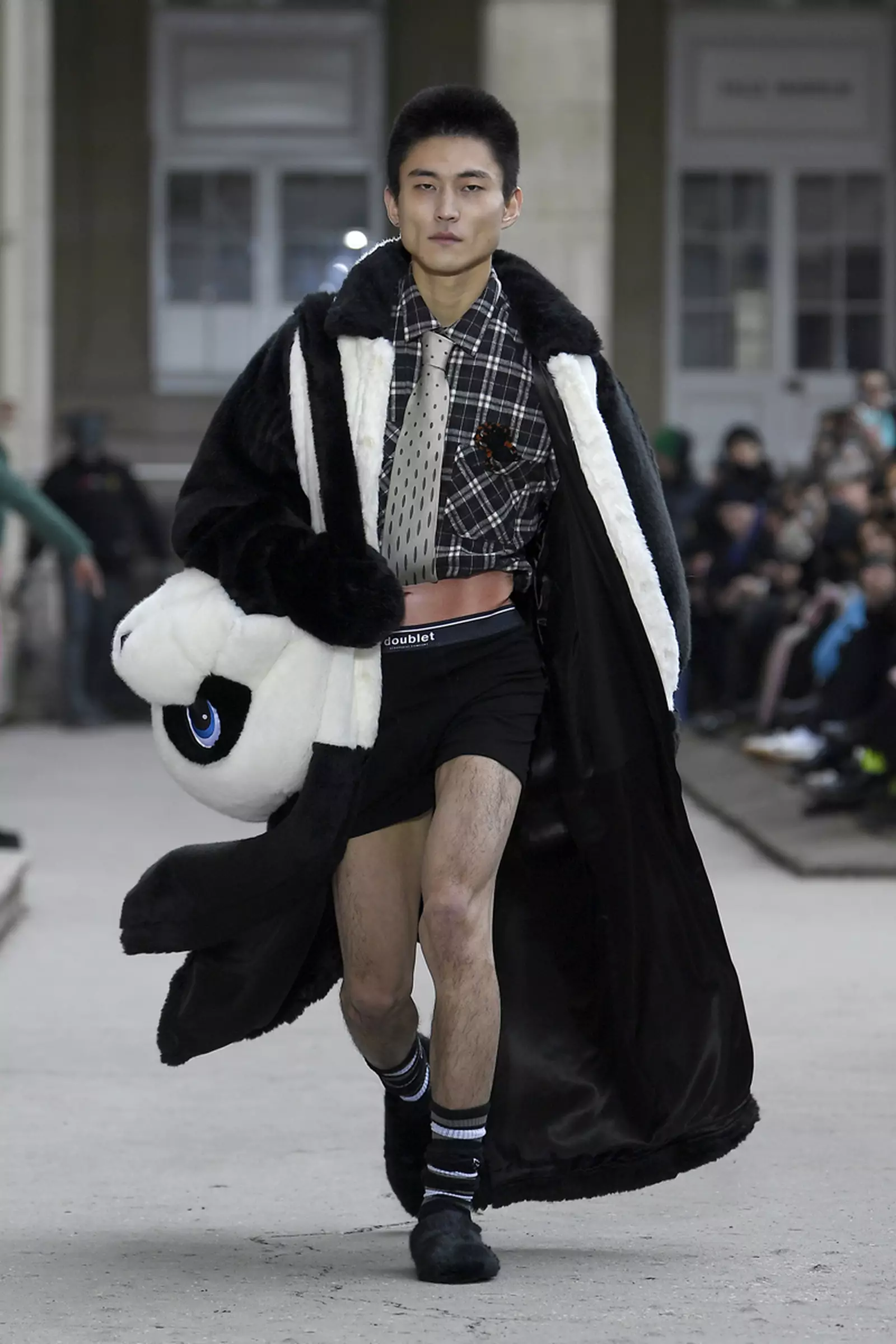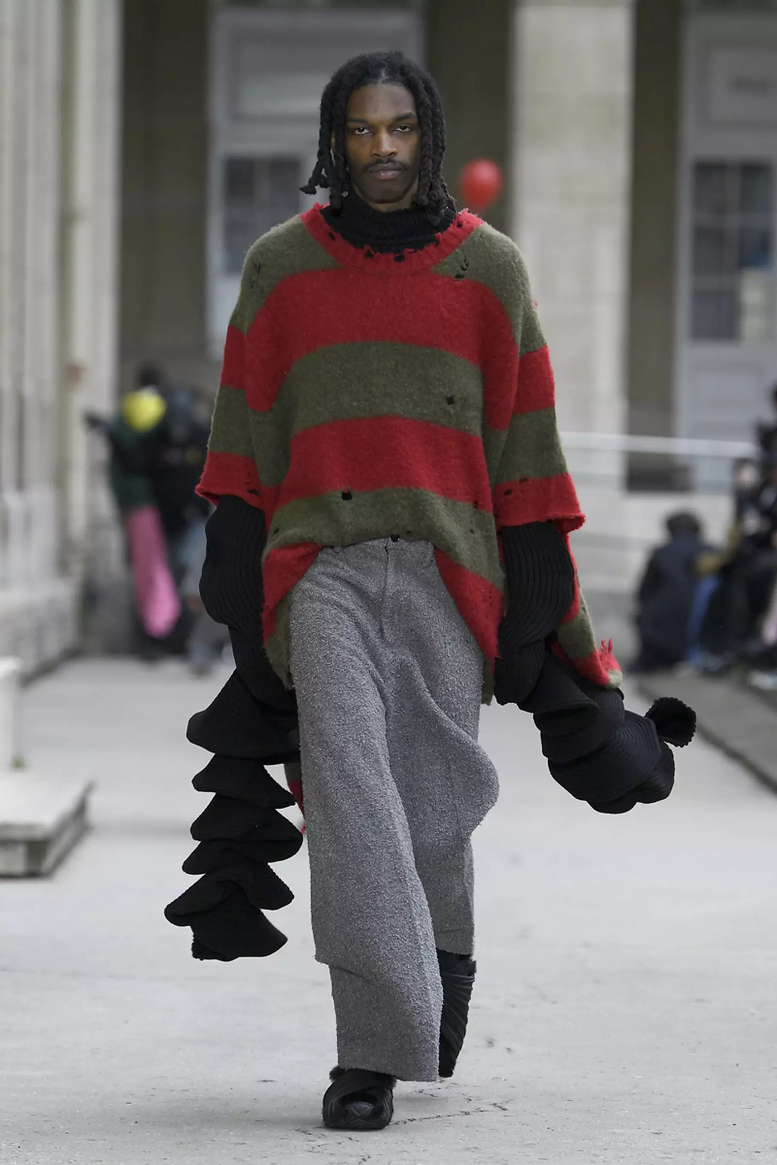 Entre las prendas esenciales a parte de los disfraces peludos pudimos ver jerséis trampantojo, la versión de Doublet del infame jersey a rayas de Freddy Kreuger también hizo acto de presencia.