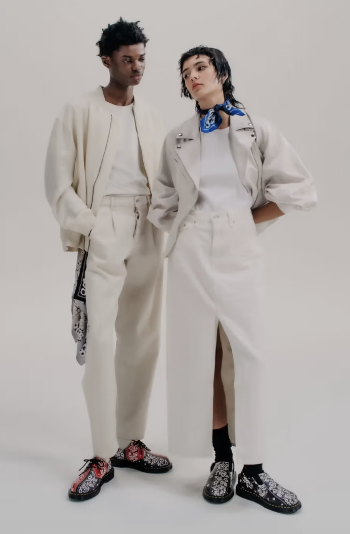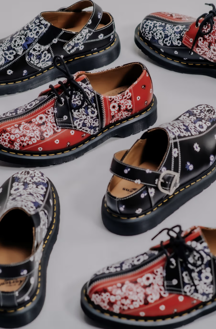 Con fecha de lanzamiento para el 3 de julio, la colaboración reinterpreta dos modelos clave: los zapatos 1461, emblema del ADN punk de la marca, y las mules Isham, que combinan comodidad y diseño en una sola pisada.