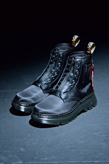 La colaboración Dr. Martens x Alpha Industries retoma los diseños originales que distinguen a cada marca, en particular la chaqueta de vuelo MA-1 de Alpha Industries, inicialmente destinada a las Fuerzas Aéreas de EE.UU. y reconocida por su forro brillante y sus bolsillos funcionales; la chaqueta comparte protagonismo con el calzado icónico de Dr. Martens. La colección subraya un espíritu compartido de autenticidad y resistencia, características que han definido a ambas marcas a lo largo de las décadas.