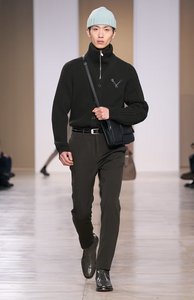 Nichanian ha querido redefinir al dandy chic y ha dicho que diseñó esta colección con la practicidad en mente. Con tweeds y lana mezclados, la colección nos transporta a la fantasía de la campiña inglesa, pero con los toques de cuero, ya sea en accesorios o en cazadoras bomber para jinetes, la colección tiene también una estética más vanguardista. Las siluetas de los trajes se caracterizan por una sastrería esbelta. Las prendas de abrigo clásicas se han rediseñado con sutiles toques de cuero.