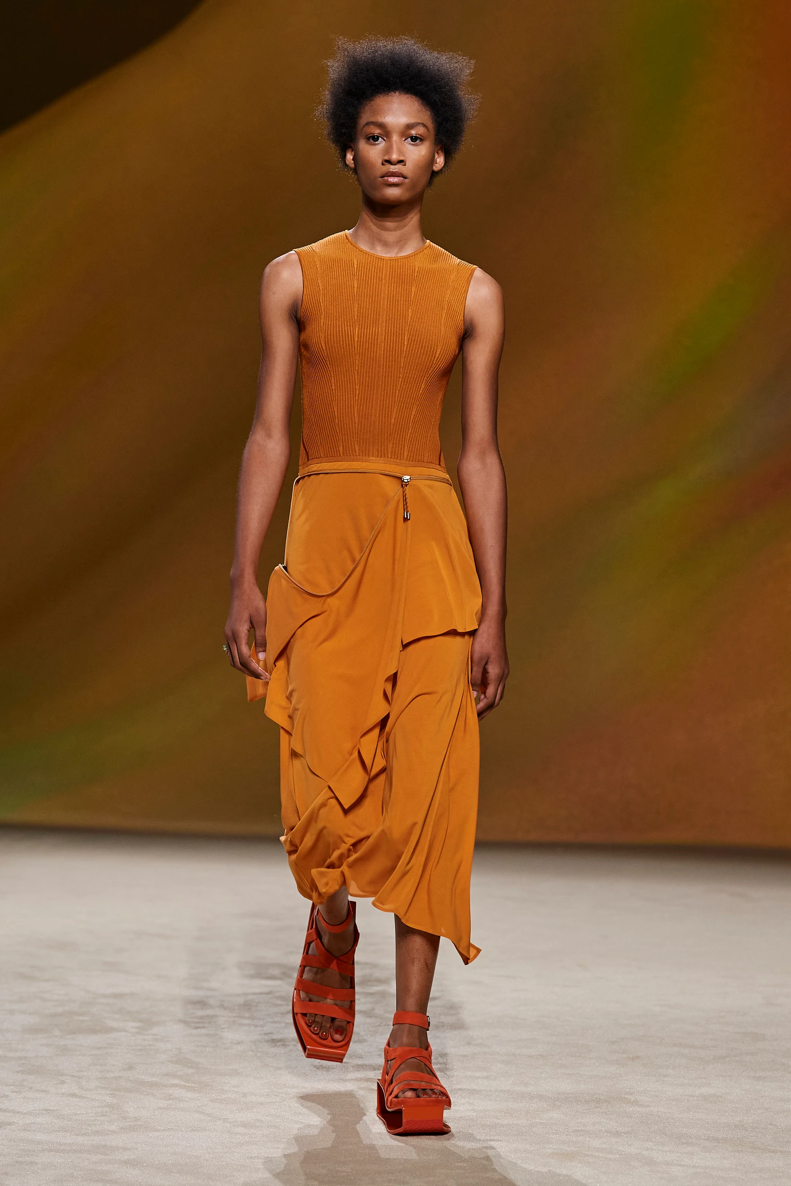 Y bien que tropezó, pero con el éxito. La mezcla de Hermès fue un wow continuado que gracias a que ha salido de su zona de confort y de su heritage ecuestre podemos decir que una nueva era se avecina para la maison. Las nylons técnicas tipo tienda de campaña, los tejidos de malla inspirados en las mosquiteras y los vestidos de seda impresos en 3D que cerraron el desfile fueron testimonio de lo que realmente hace Hermés: convertir una idea en el más alto nivel de artesanía. Aunque aún desconocemos la practicidad de todos los looks ya que seguramente no todos sean para una excursión para el desierto, pero bueno… ¡Es Hermès!