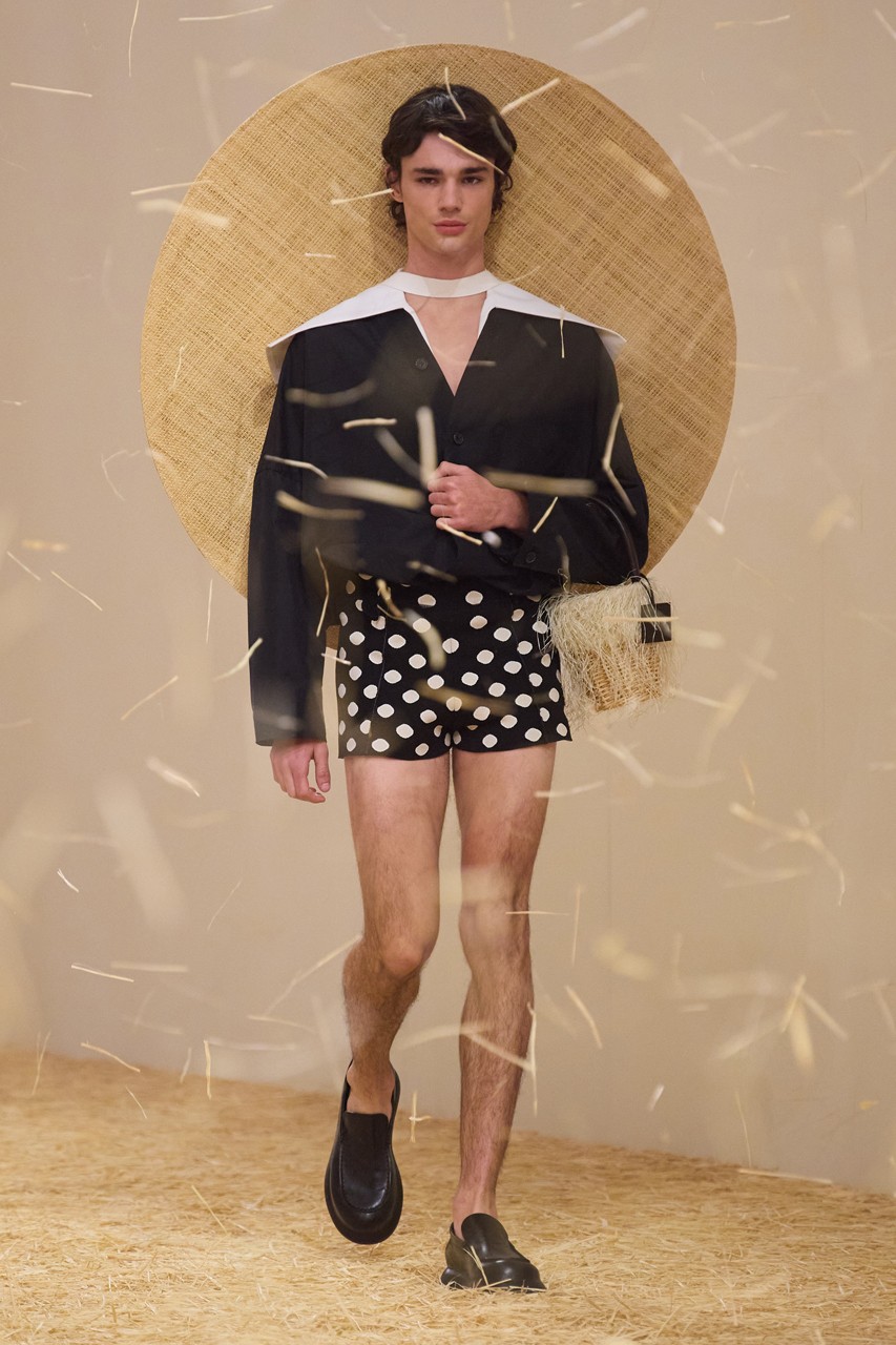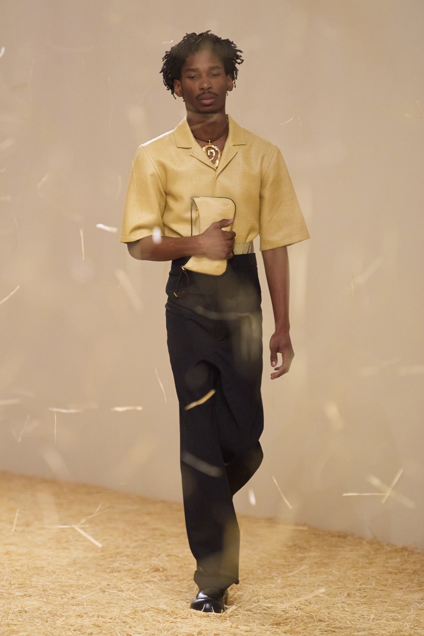 Jacquemus consigue ofrecer nuevas e impresionantes experiencias con cada colección, aunque parece un batiburrillo de desfiles pasados, no lo es. Incluso en su novedad, los elementos esenciales del diseño de Jacquemus se mantienen firmes a través de piezas de colores naturales, siluetas centradas en la sastrería y diseños de prêt-à-porter ampliados. Para el elemento de belleza natural de esta colección, el diseñador se fija en la palma rafia, originaria de las regiones tropicales africanas.