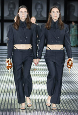 La colección "Twinsburg" presenta a 68 gemelos idénticos, cada uno de ellos cogido de la mano mientras caminan con prendas de réplica exacta. La producción de las prendas duales refleja los looks en sí mismos, y cómo nos los imaginamos. Es precisamente este equilibrio visual el que Michele pretende maximizar, utilizando el poder de los dos para deformar y dar valor a sus looks.