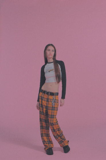 Bershka reedita la tendencia punk llevando los looks a un plano más contemporáneo, donde se han versionado clásicos como las cazadoras perfecto en leather effect o las camisetas con estampado de rayas combinándolos con los key ítems de esta temporada FW22 como las faldas de tablas y minivestido en cuadro tartán combinando colores azules, naranjas y negro, el chaleco corset o el pantalón recto de cintura baja.