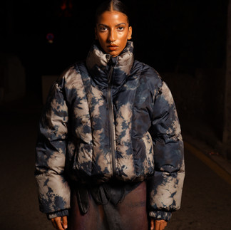 Estos personajes de la obra de Madalena también se convirtieron en una gran fuente de inspiración creativa para MIISTA: desafiaban las expectativas y sobrepasaban límites insondables, transformándose en personajes y expresiones de su verdadero yo en una época en la que hacerlo les ponía en peligro. La colección resultante aprende de la estética del glamour underground de los años 60, 70 y 80. Las siluetas de las prendas hacen referencia a la lencería y la corsetería, con elásticos que ciñen el cuerpo y encajes de merino que lo cubren.