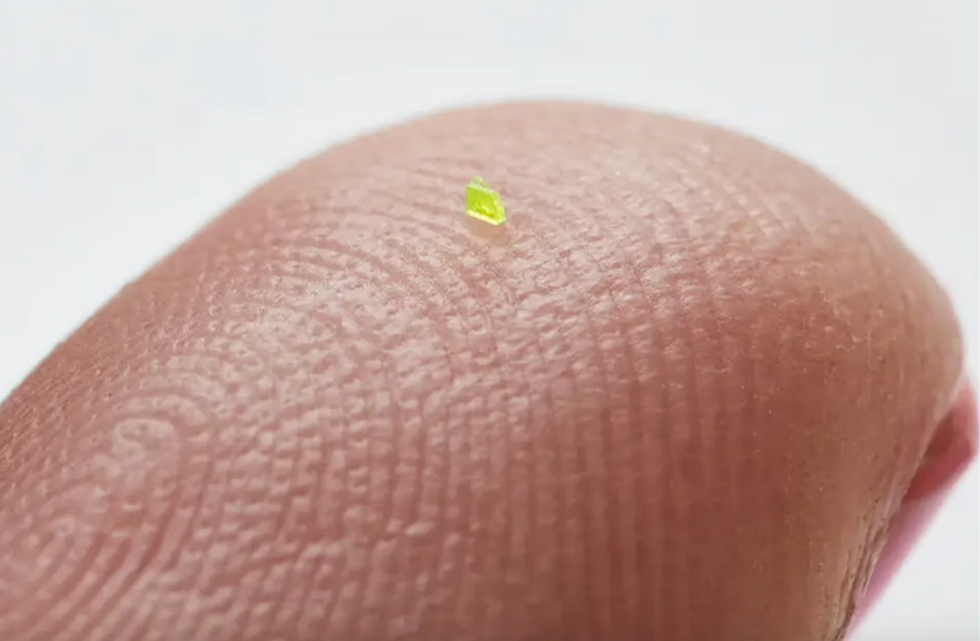 El microbag se ha fabricado con resina mediante un proceso de impresión microscópica en 3D conocido como polimerización de dos fotones. El microbag de MSCHF se pondrá a la venta en exclusiva en la subasta Just Phriends de Sarah Andelman el 19 de junio.