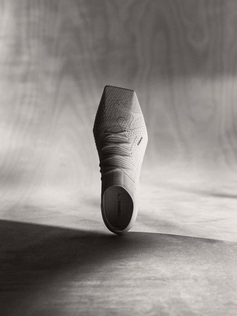 Coperni reformuló hábilmente la bota PUMA en un zapato de punta cuadrada, su fabricación es tan técnica como la bota de fútbol que la inspiró: el director creativo global de PUMA, Heiko Desens, la describió como "puro rendimiento. En 1000 años, las botas de fútbol estándar se verán así”.