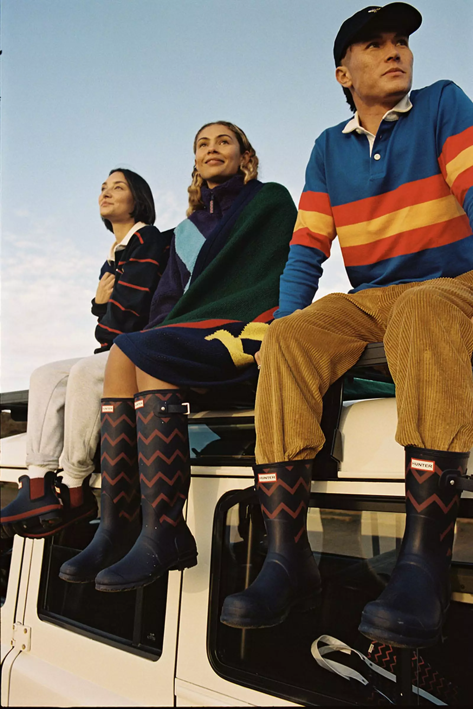 La colección Rowing Blazers & Hunter, ya disponible en línea, incluye las botas de lluvia Original Short, Tall y Chelsea para mujer, así como las botas de lluvia Short para hombre.